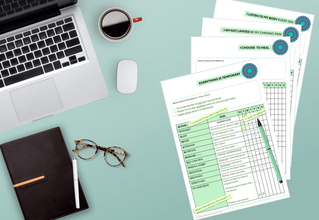 Now – one last thing – to help celebrate my mini-anniversary, I thought I’d give you all a few presents. At the same time as blogging about mindfulness for chronic pain, I’ve also been turning some of the spreadsheets I used during my healing journey, into resources for you guys to download. There’s now a “Resources” tab at the top of the website that will take you to page of… you guessed it: FREE resources! There’s a migraine tracker template, as well as goal setting spreadsheets for your mindfulness journey (remember you don’t have to be sick to benefit from bringing mindfulness into your life), plus mandalas for coloring-in and mini-affirmational cards. Here’s hoping you find something that assists you on your individual path towards better health and happiness! So, go on – help yourself!