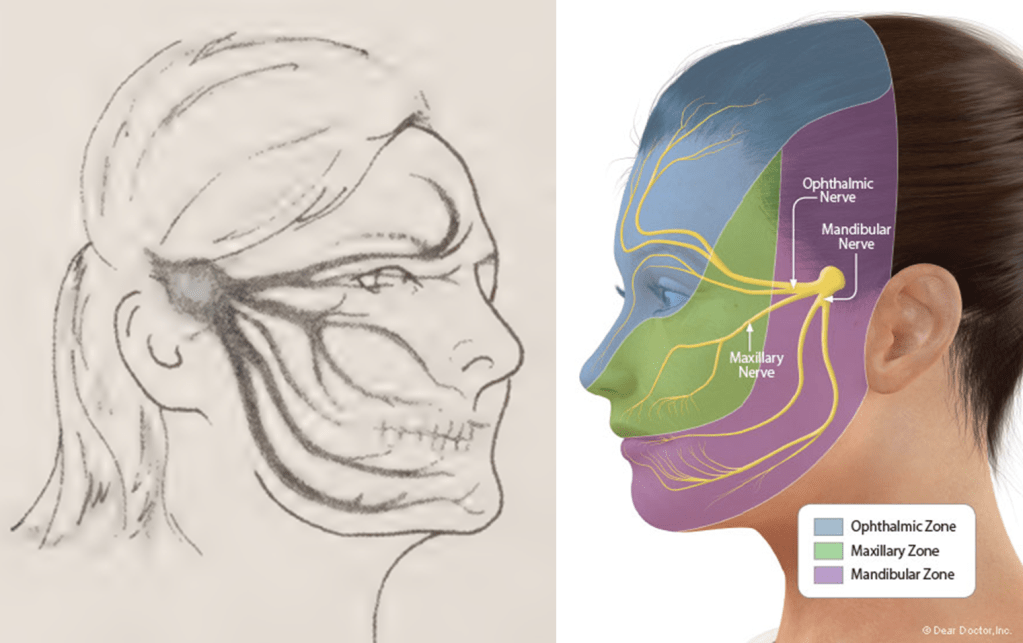 [Images sources: page 46 & Trigeminal Neuralgia – A Nerve Disorder That Causes Facial Pain (deardoctor.com)]
