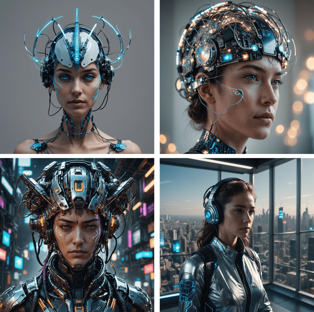 This time, when I asked the AI art generator to show me a futuristic migraine saving device, I got these: