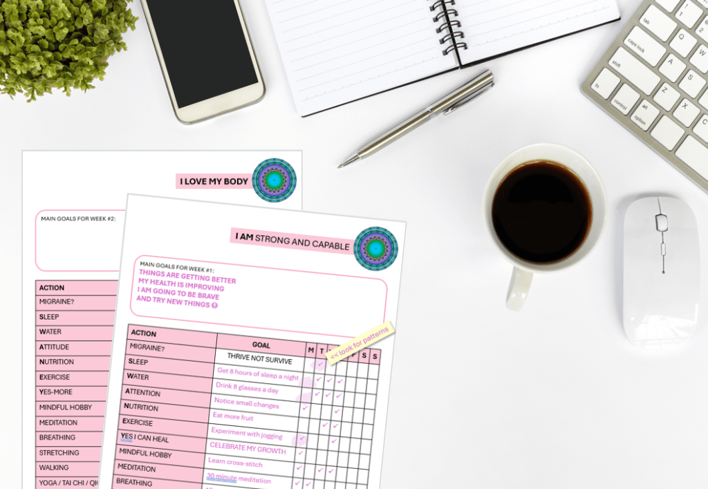 Mini-Mindfulness Course, Migraine Tracker, Goal Setting Templates, Mandalas & Affirmations…